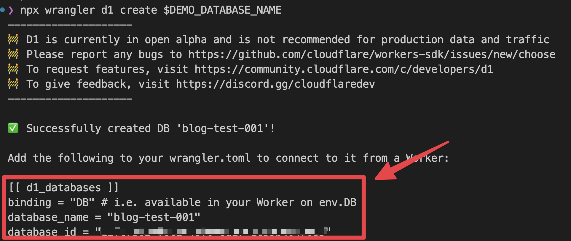 npx wrangler d1 create $DEMO_DATABASE_NAMEConfigure database binding