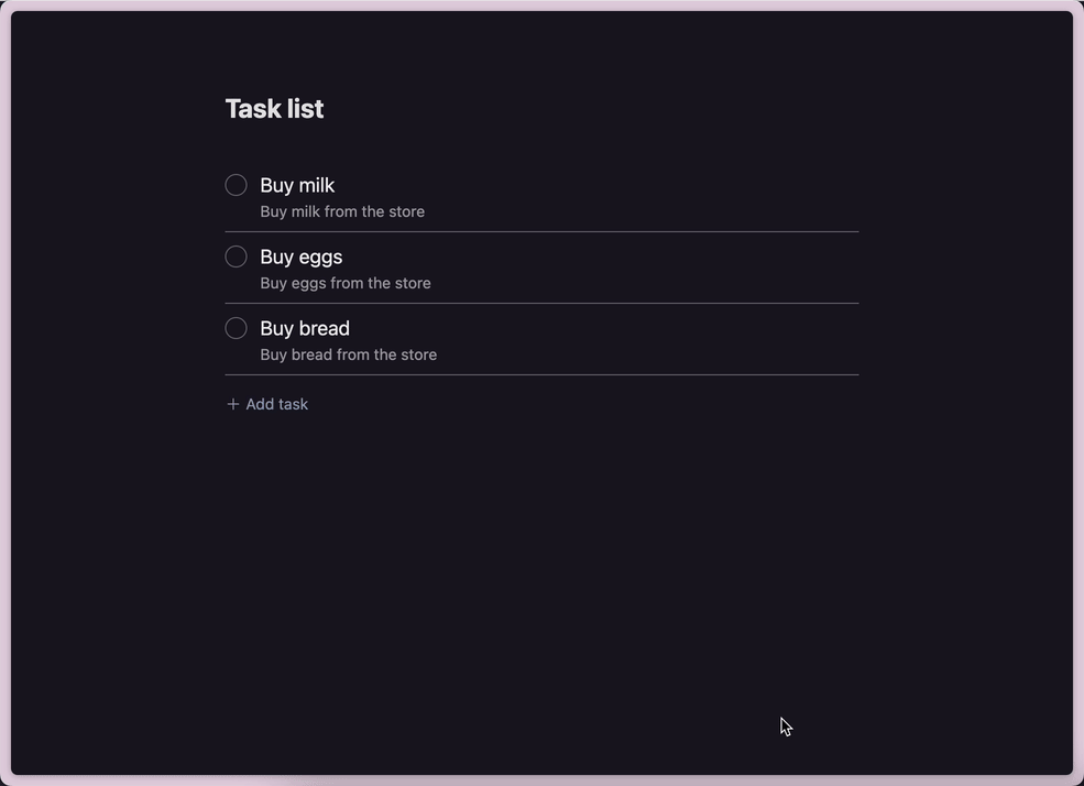 });This schema defines a tasks table with drizzle-orm so that you can access the table with type safety.